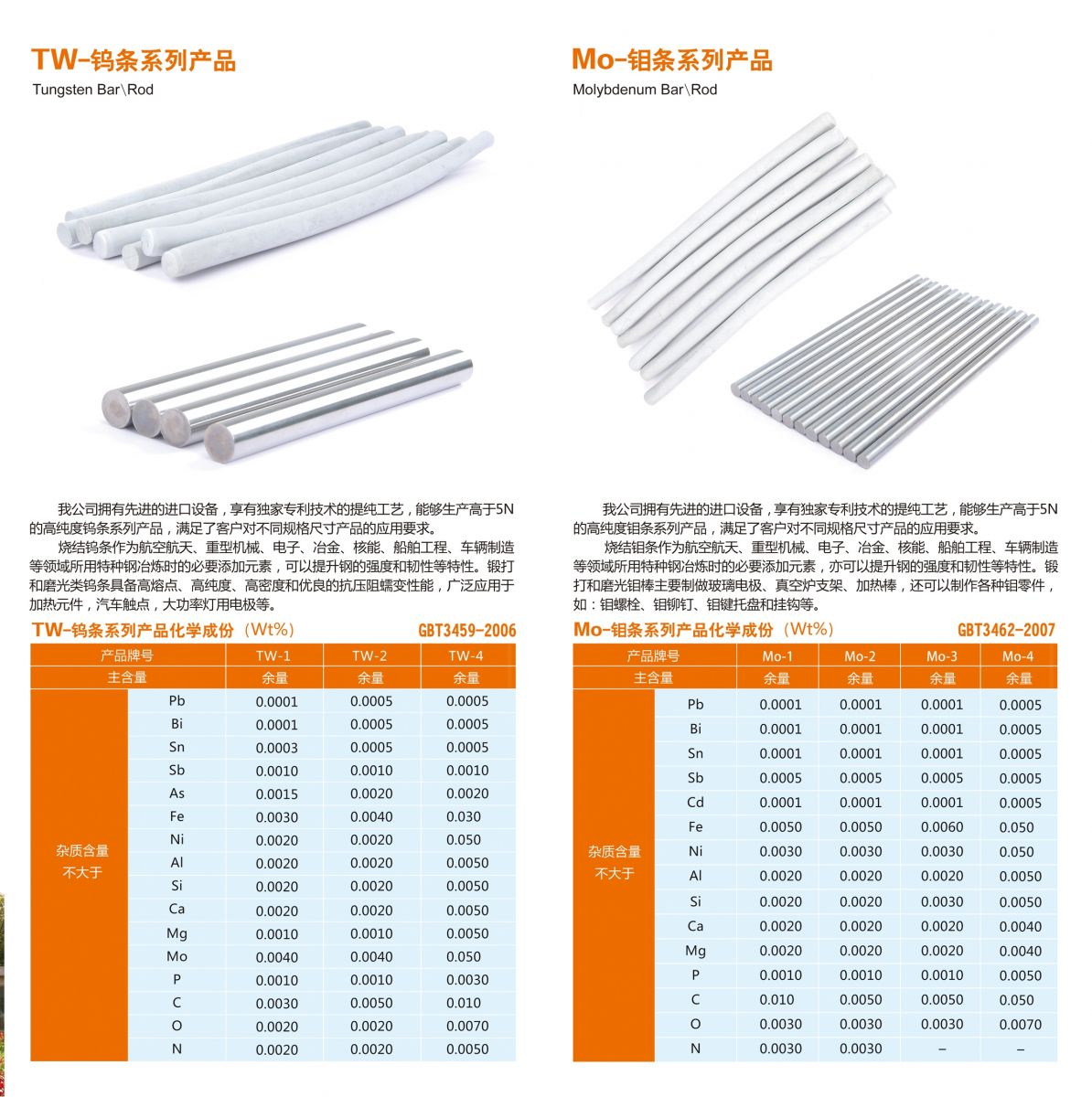 高純鎢鉬條系列